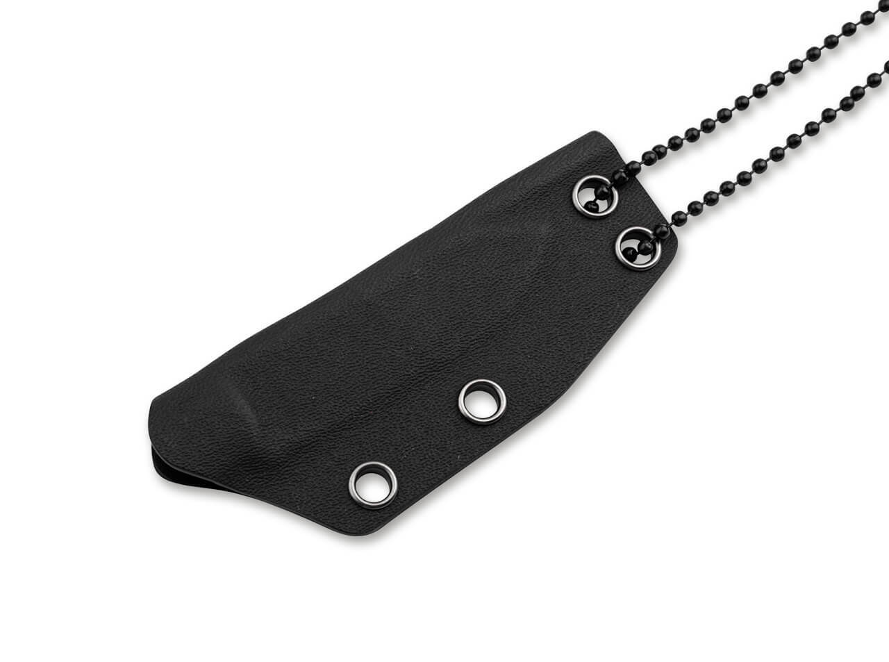 Czarna pochwa Kydex o wymiarach 10,4 cm x 4 cm z łańcuszkiem kulkowym. Odpowiednia dla modeli Boker BFF Packlite z okładzinami rękojeści.
