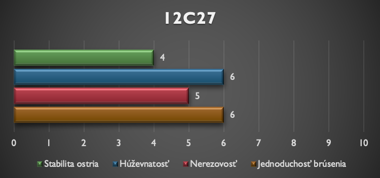 Mimo że stal ta jest obecnie używana głównie do produkcji noży z niższej półki, poza stabilnością ostrza ma inne właściwości na bardzo dobrym poziomie.