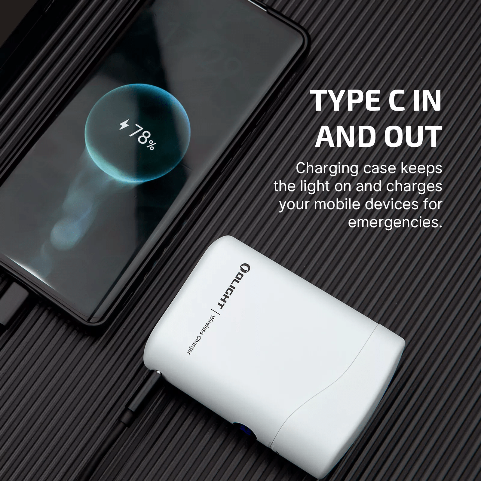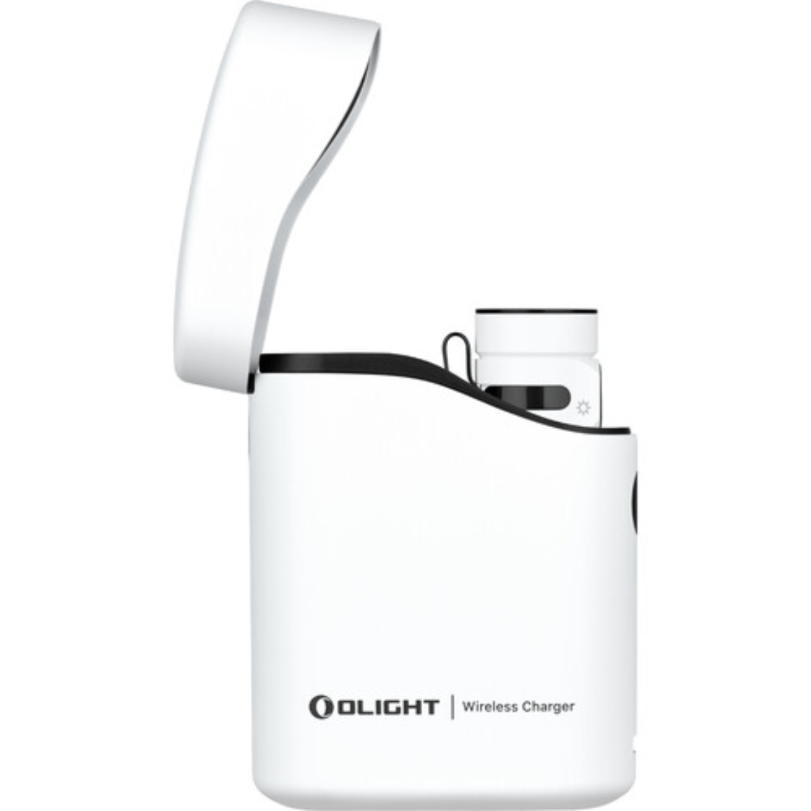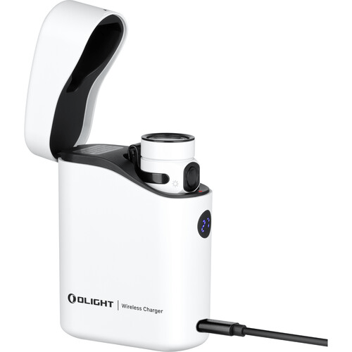 Wystarczy włożyć latarkę do etui, a wewnętrzny wskaźnik ładowania zmieni kolor na czerwony, co oznacza, że ładowanie jest w toku, a na zielony na 10 sekund przed wyłączeniem, sygnalizując zakończenie ładowania. Inteligentna dezaktywacja następuje, jeśli latarka jest włączona i umieszczona w ładowarce z zamkniętą pokrywą. Podczas ładowania latarki zewnętrzny wskaźnik będzie migał na czerwono, jeśli poziom naładowania etui spadnie poniżej 10%, informując użytkownika o konieczności naładowania etui.