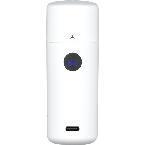 Etui do bezprzewodowego ładowania ma wbudowaną baterię o pojemności 5000 mAh, którą można naładować, podłączając dołączony kabel USB-C do odpowiedniego źródła zasilania USB. Symbol błyskawicy na wyświetlaczu miga podczas ładowania i pozostaje stały po jego zakończeniu. Wskaźnik wyświetli poziom naładowania po naciśnięciu przycisku lub po otwarciu lub zamknięciu pokrywy.