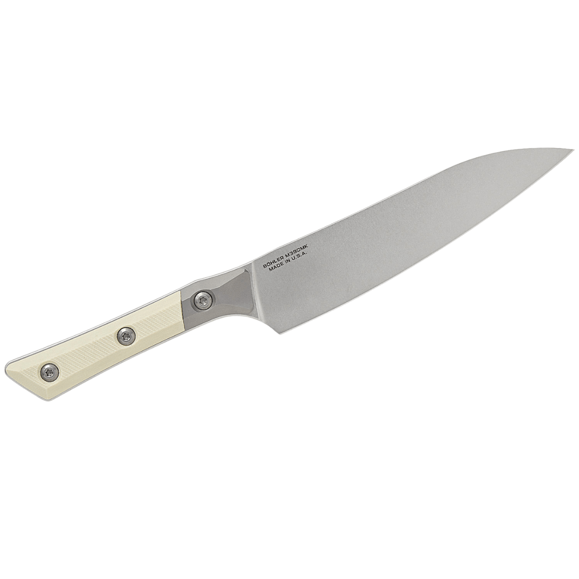Ergonomiczna rękojeść wykonana jest z G10 w kolorze kości słoniowej z tytanowymi bolsterami. Zapewnia komfort podczas wymagających prac przygotowawczych.
