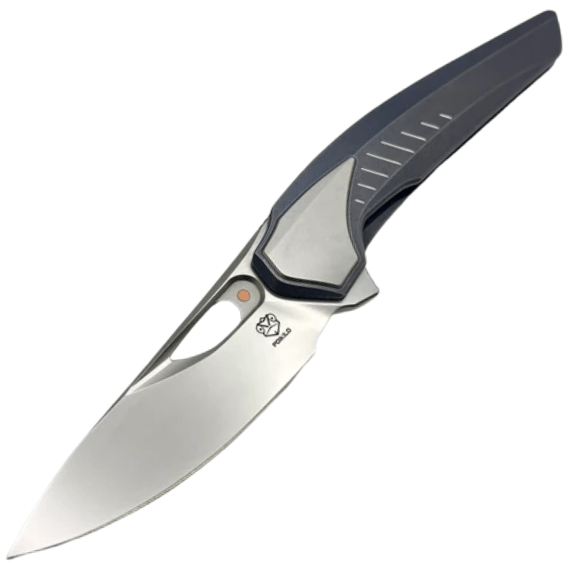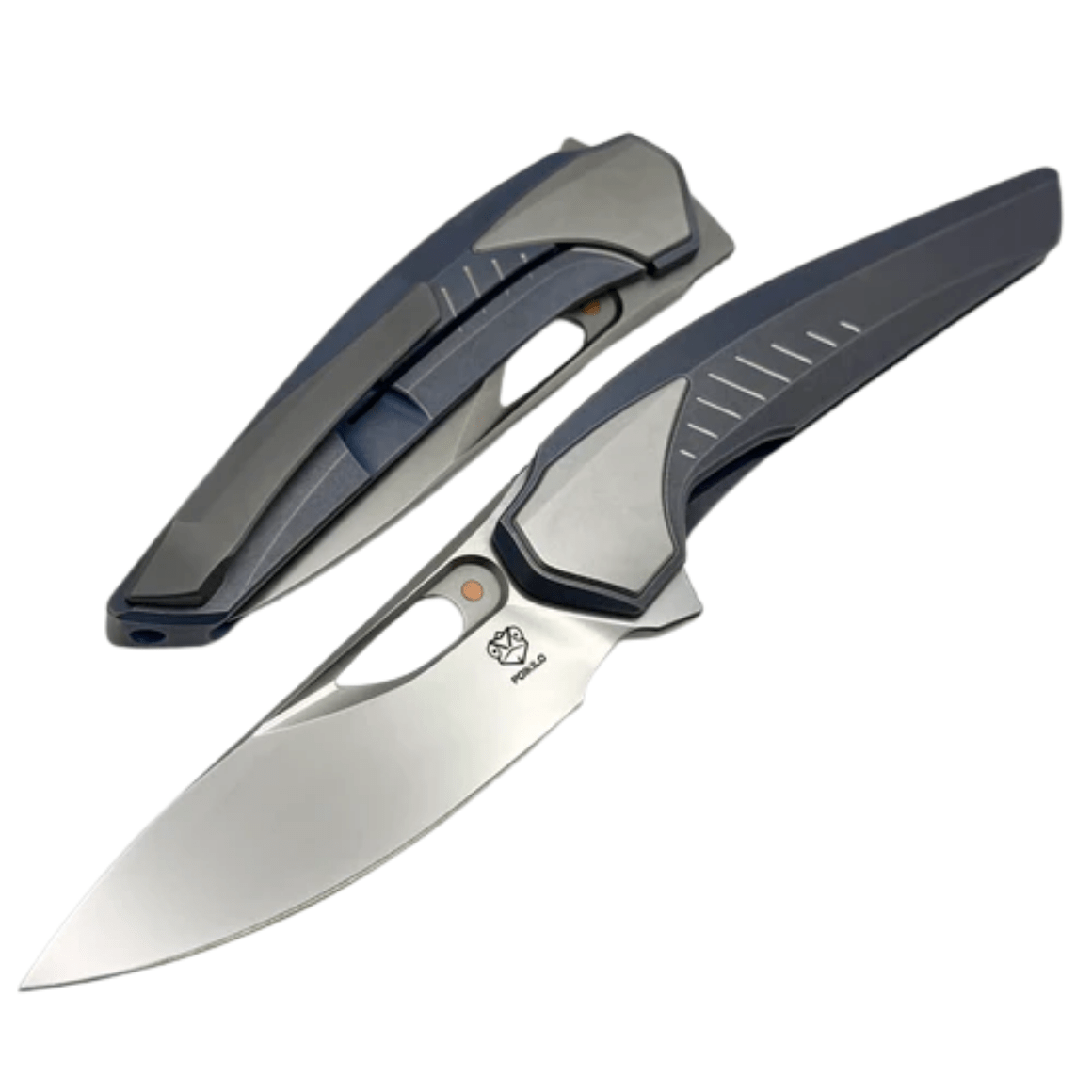 Rękojeść wykonana jest z najwyższej jakości tytanu w kolorze ciemnoniebieskim Stonewash i szarym, co zapewnia zarówno wytrzymałość, jak i atrakcyjne wizualnie wykończenie. Tip-down pocket clip zapewnia dyskretne i bezpieczne noszenie.