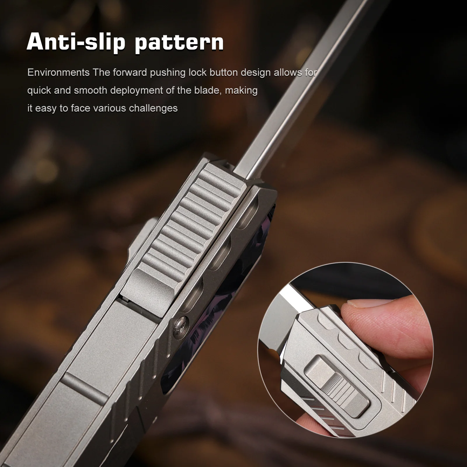 Przycisk blokady z mechanizmem przesuwania do przodu umożliwia szybkie i płynne otwarcie ostrza, co ułatwia stawienie czoła różnym wyzwaniom.