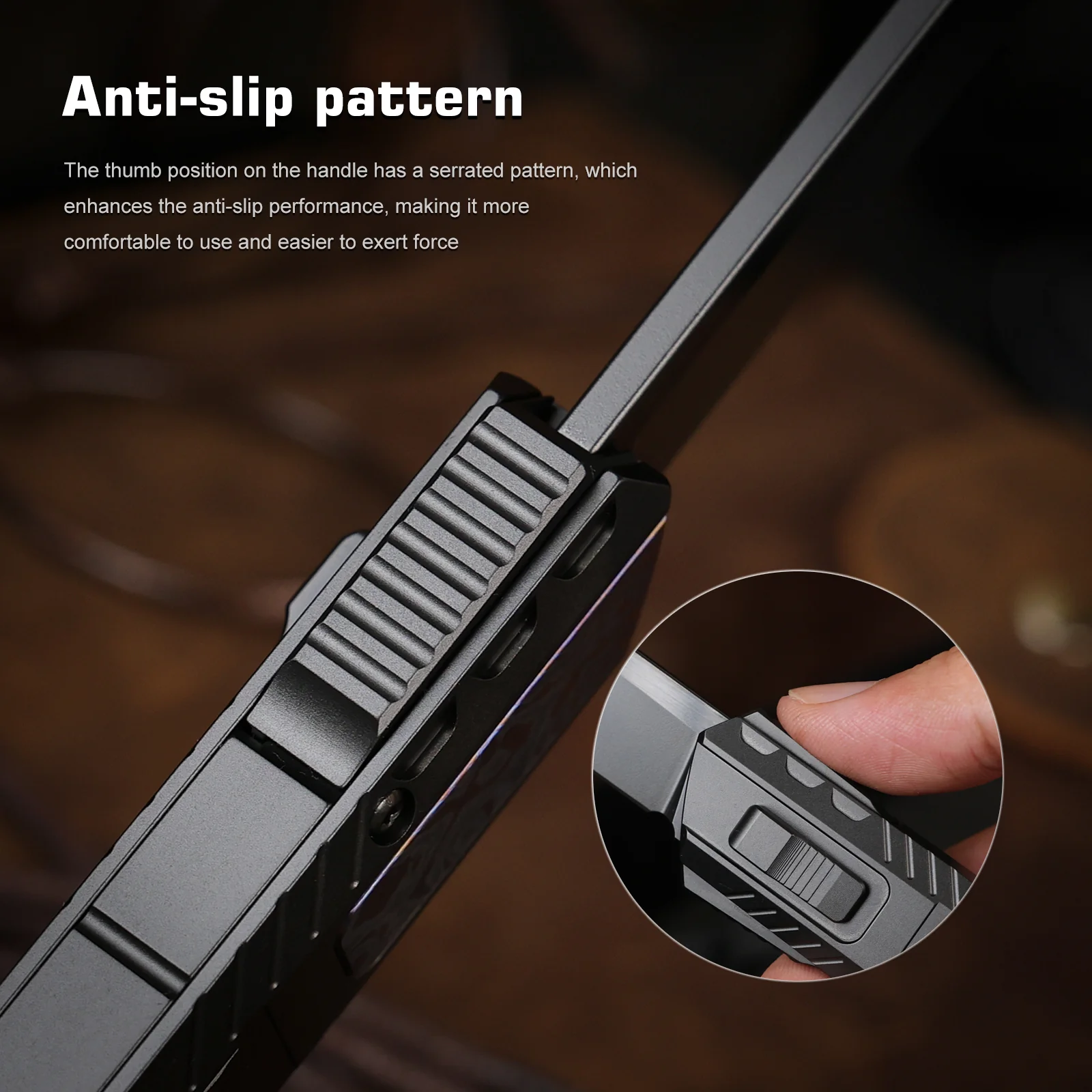 Przycisk blokady przesuwany do przodu umożliwia szybkie i płynne otwarcie ostrza, co ułatwia stawienie czoła różnym wyzwaniom.