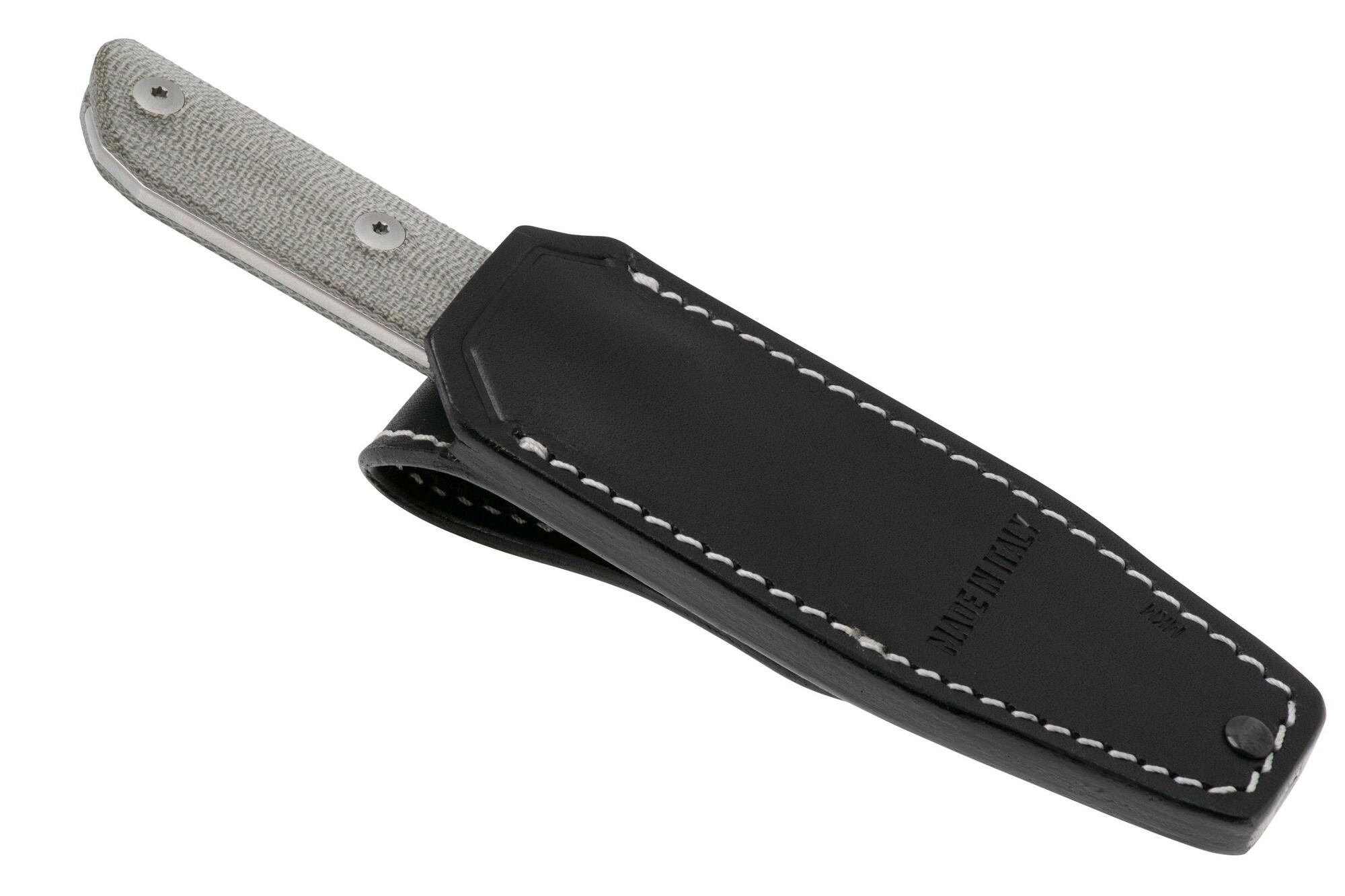 Dzięki prostemu designowi, waga jest również minimalna. To sprawia, że Viper Mirror 2 jest idealnym nożem do EDC. Piękna skórzana pochwa posiada magnetyczne zapięcie na szlufce, co ułatwia noszenie. Różnica między Viper Mirror 1 a Viper Mirror 2 polega na lokalizacji wycięcia na palec oraz na tym, jak wysoko pełny płaski szlif krawędzi sięga na ostrzu.
