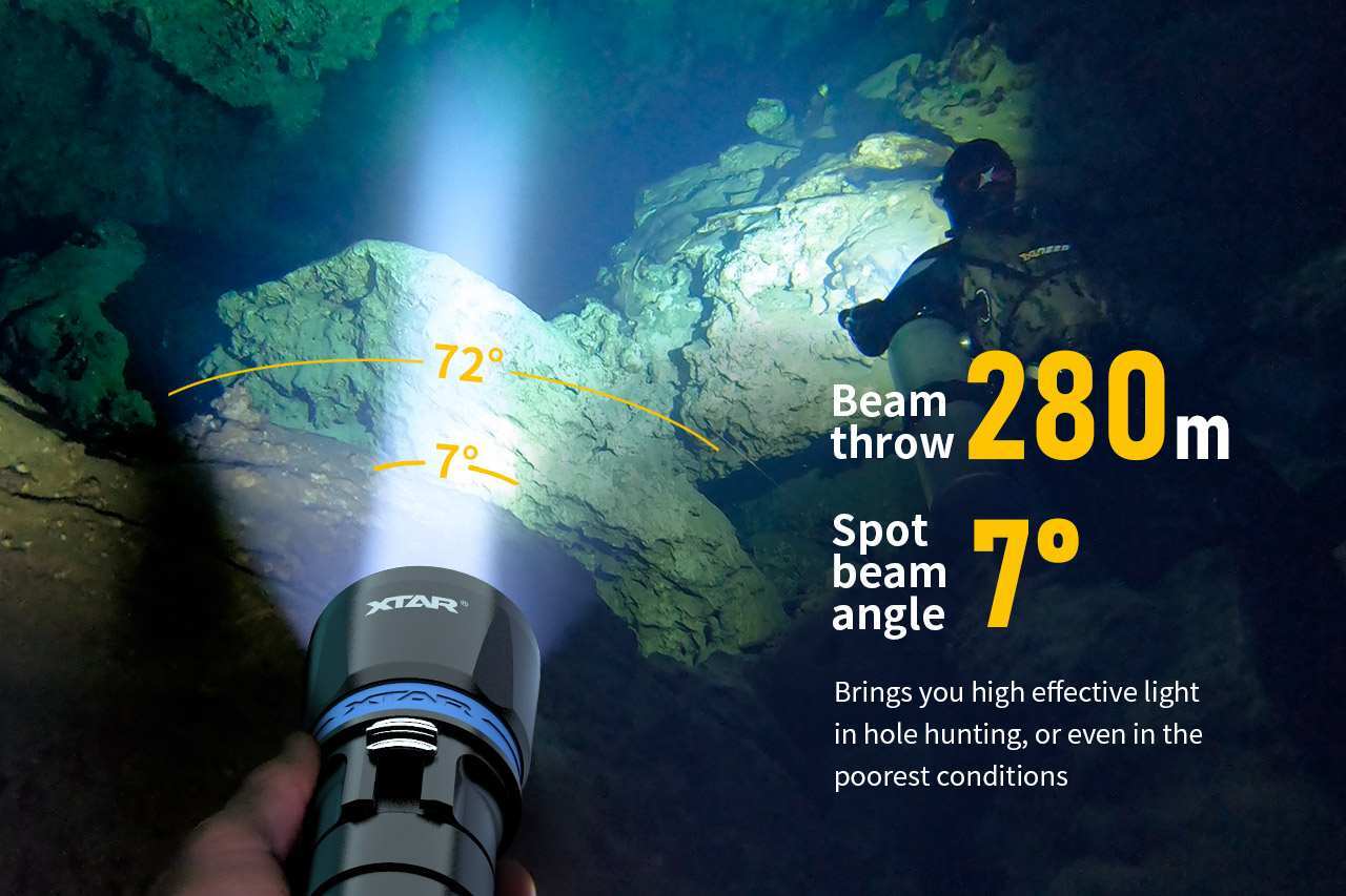 • Kąt wiązki punktowej 7 stopni i zasięg 280 m